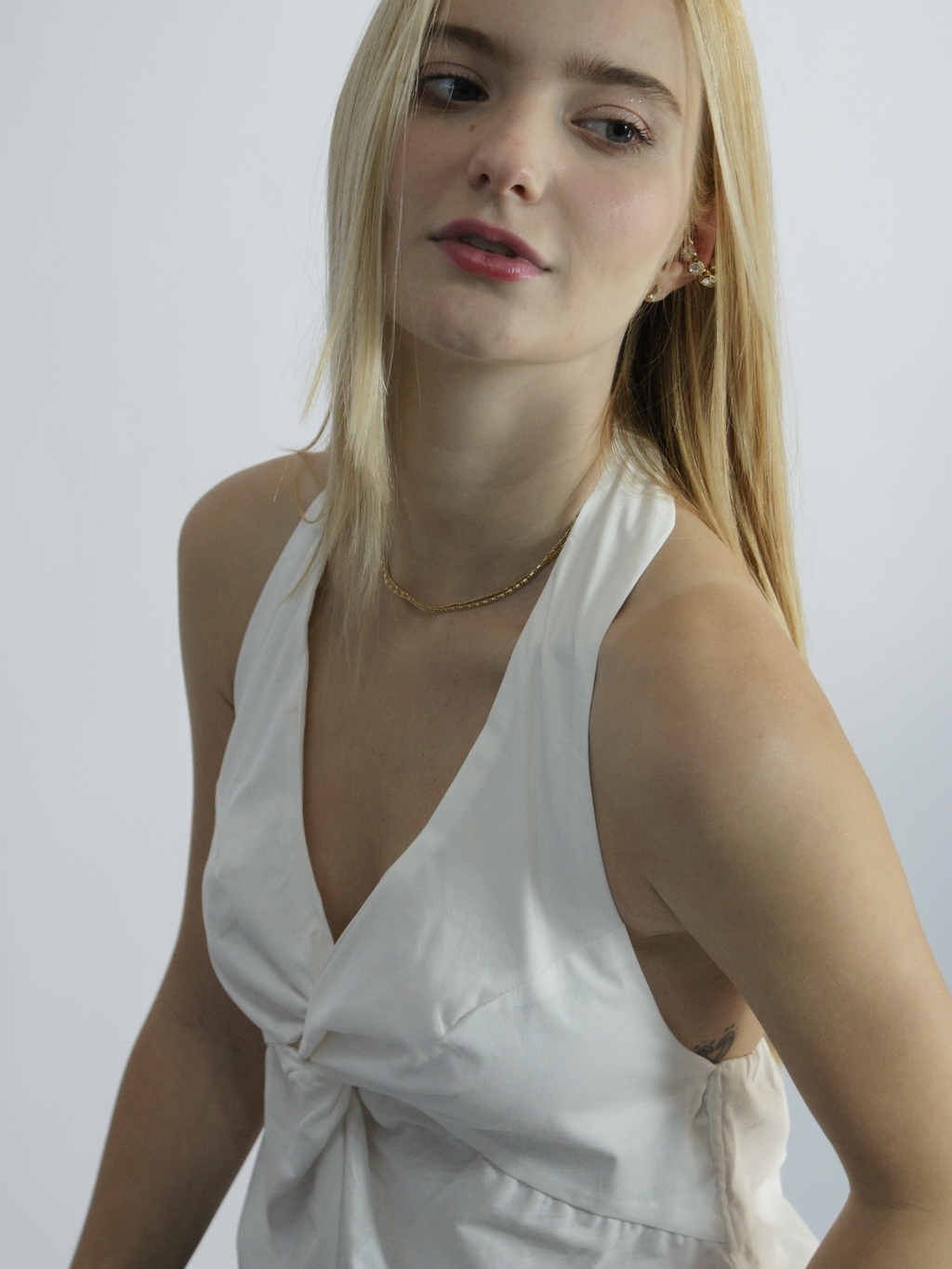 Blusa frente única com decote frontal e detalhe em nó no centro da peça. A parte do busto é mais ajustada ao corpo, modelando bem essa região, enquanto da cintura até o comprimento a blusa fica levemente soltinha, garantindo conforto sem perder o caimento bonito. Possui pence no busto que ajudam a valorizar ainda mais a peça. Conta com elástico embutido na parte de trás do pescoço, que ajuda na altura e conforto ao vestir, além de elástico nas costas da cintura, que faz com que a peça se ajuste melhor ao corpo. Uma peça versátil e elegante — perfeita pra usar tanto de dia quanto à noite.